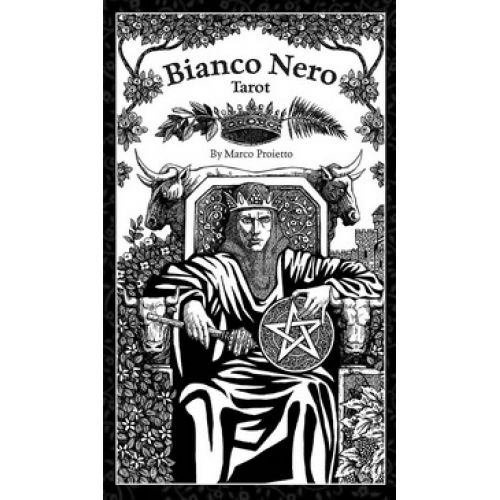 Таро Б'янко Неро (чорно-біле) поєднує в собі класичну іконографію Таро Вісконті із сучасними, намальованими від руки тушшю ілюстраціями, натхненими старовинними гравюрами та гравюрами на дереві, насправді позачасового вигляду. Включає 64-сторінковий буклет англійською мовою.