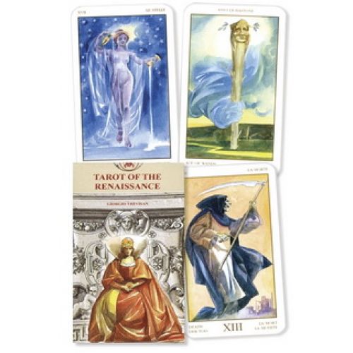 Від Шекспіра до Леонардо да Вінчі, від Людовіка Короля-Сонця до королеви Єлизавети, Ренесанс був яскравим часом художнього генія та абсолютних монархів. Колода Таро цього періоду відображає майстерність і різноманітність того часу, коли одягнені в оксамит придворні ходили мармуровими залами палаців, а селяни працювали на полях. Дух, цивілізація і культура епохи великої художньої та культурної енергії народжуються в цих картах, що наводять на роздуми. Супутні буклети для більшості колод Lo Scarabeo написані п'ятьма мовами: англійською, іспанською, французькою, італійською та німецькою.