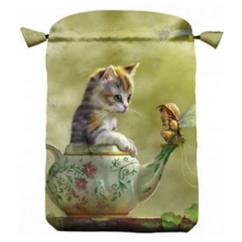 Цей чарівний мішечок на лаштунці, виготовлений з атласу, прикрашає кумедна фантастична ілюстрація із серії робіт художника Паоло Барб'єрі "Фантастичні кішки". 12 чарівних сценок із життя кішок, близьких до світу магії, були нещодавно випущені італійським видавництвом Ло Скарабео у формі календаря "Fantasy Cats" на 2019 рік. Мішечок обов'язково сподобається любителям кішок, шанувальникам легкого оптимістичного фентазі та відьмам, які шукають дружби фейрі та інших природних духів. Він послужить вам аксесуаром для Таро або іншого оракула, дбайливо зберігатиме ваш магічний маятник, амулети, кристали та інші важливі ведівські дрібниці, які ви вважаєте за краще завжди мати під рукою.